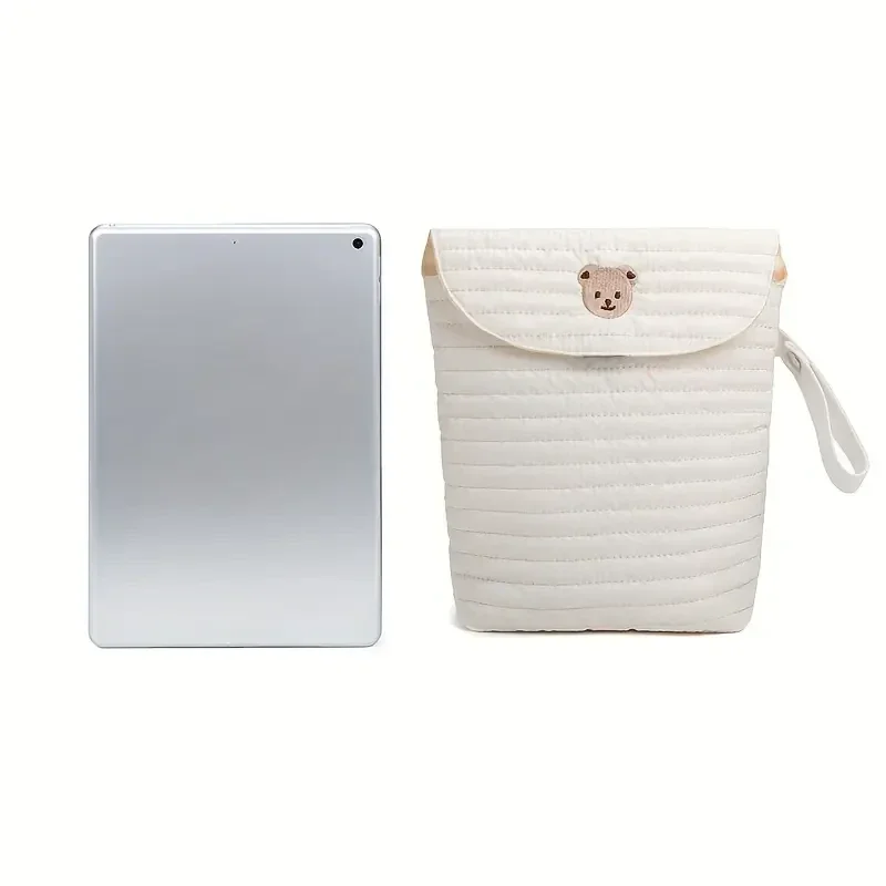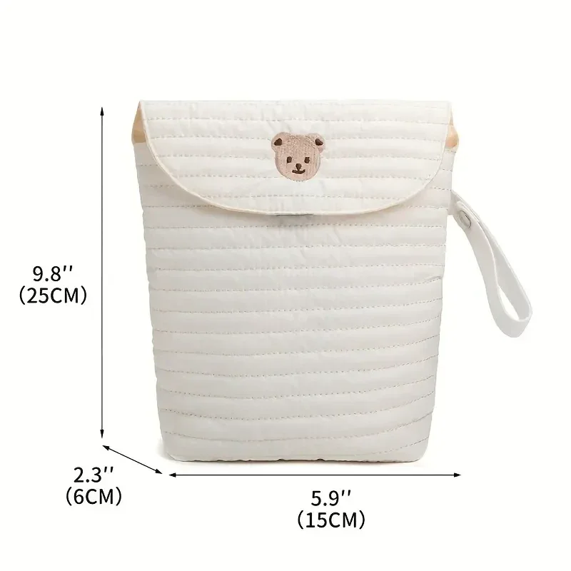 Zorganizowana mama to spokojniejszy dzie艅 – a ta kosmetyczka z motywem misia pomo偶e Ci utrzyma膰 porz膮dek w torbie i mie膰 wszystko pod r臋k膮, kiedy najbardziej tego potrzebujesz. Specjalny format na pieluszki i paczk臋 mokrych chusteczek – w pi臋knym, dzieci臋cym stylu.