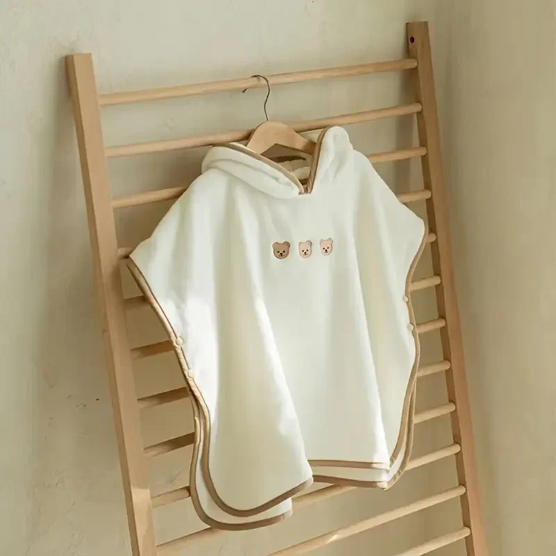 Ten ręcznik kąpielowy w formie szlafroczka z kapturkiem to must-have każdej kąpieli – w domu, na basenie i na wakacjach. Delikatny materiał nie podrażnia skóry malucha, a wygodny fason zapewnia ciepło i swobodę ruchu po wyjściu z wody.