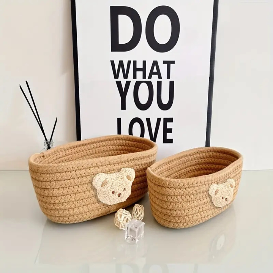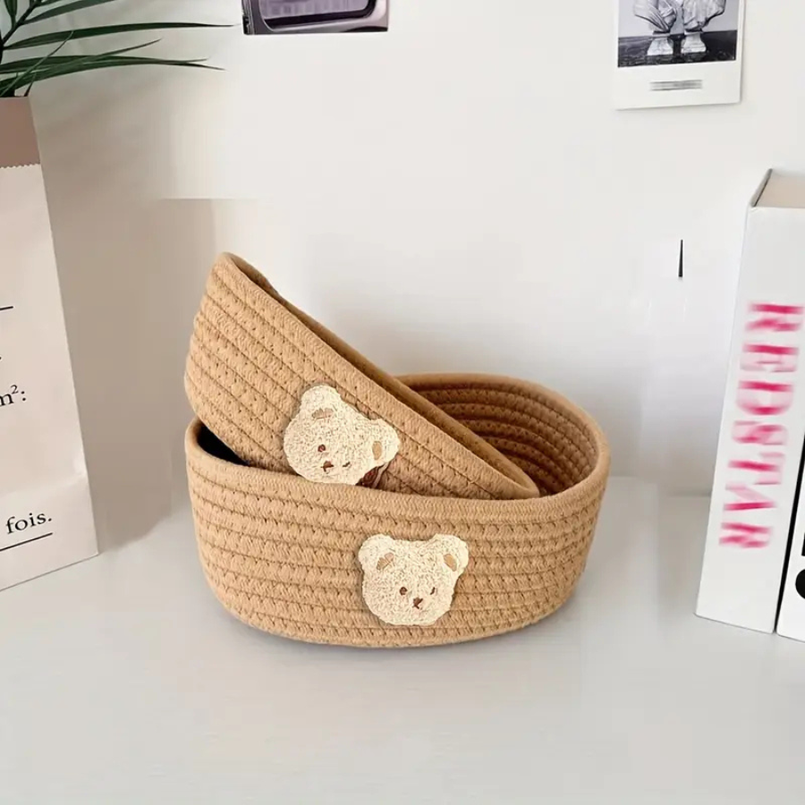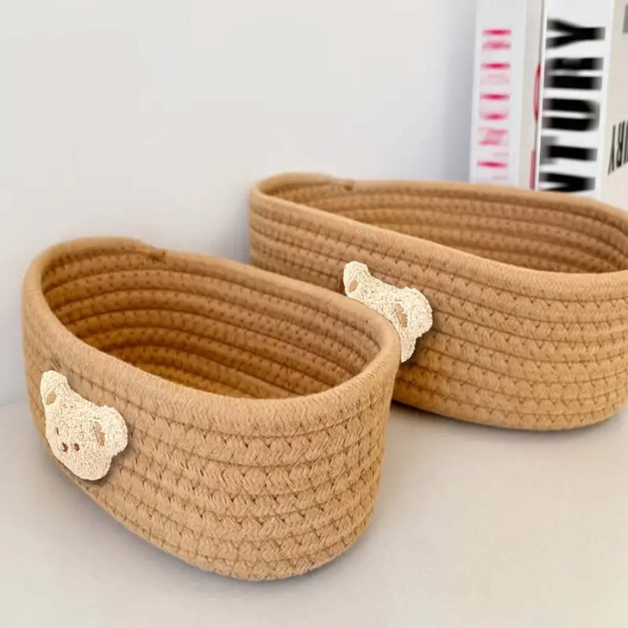 Uroczy, miękki koszyczek z motywem misia to połączenie funkcjonalności i ciepła domowego designu. Idealny do przechowywania drobiazgów w pokoju dziecka, łazience czy na biurku mamy. Pomoże zachować porządek, a jednocześnie wprowadzi do wnętrza przytulny, minimalistyczny klimat.