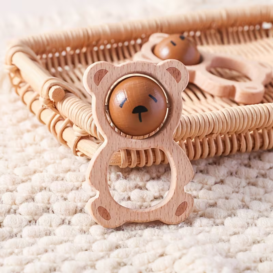 Mała, leciutka i idealnie dopasowana do dziecięcych dłoni – drewniana grzechotka-miś to pierwsza zabawka dla Twojego Dziecka. Bezpieczna, naturalna i pełna uroku.